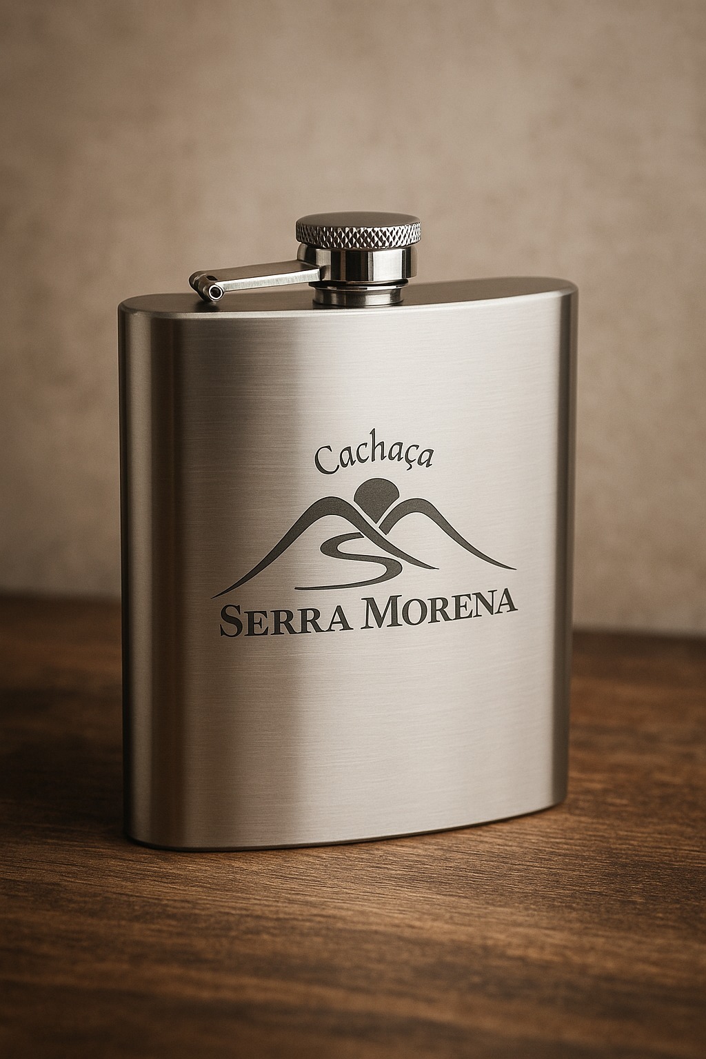 O Cantil Personalizado Serra Morena une resistência, design elegante e a marca oficial gravada no inox, tornando cada dose um gesto de identidade e estilo.